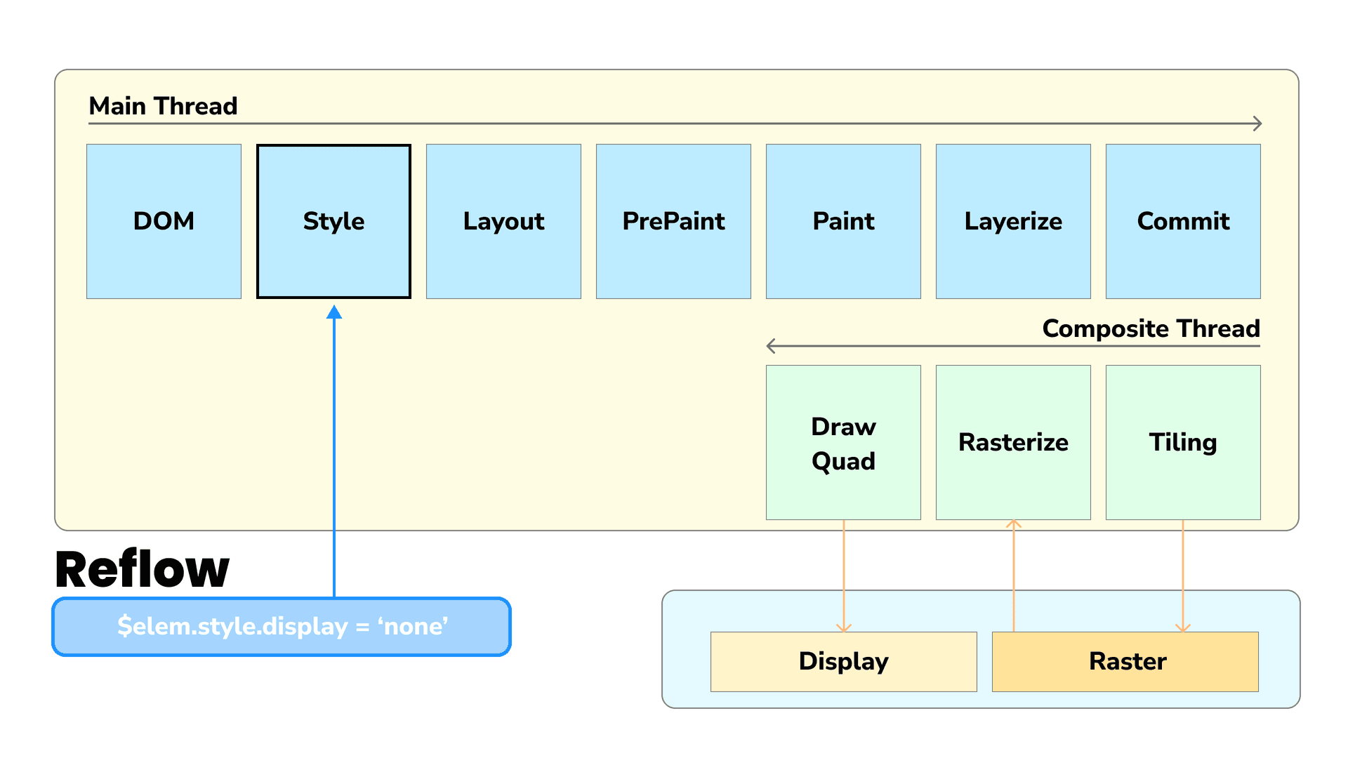 이 되었기 때문에, Style 단계는 물론 Layout 계산 과정도 모두 다시 수행됩니다.
